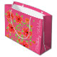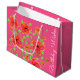 Impresión floral decorativa en rosa, naranja y coral en una bolsa de regalo rosa feliz cumpleaños de gran tote, el fondo rosado se puede cambiar a cualquier color, y el texto se puede personalizar para cualquier ocasión.