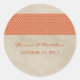 Elegantes y modas Pegatinas de la Boda Rustic Damask, con una apariencia de papel texturado vintage y un floreciente borde de patrón de damasco en naranja. Fácil de personalizar, simplemente añada los detalles de su boda. Haga clic en "Personalizar" para encontrar más opciones de personalización.