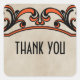 Elegante y moda Swirls Gótica Gracias Pegatinas con un fondo beige falso de textura vintage y bordes giratorios florecientes en naranja. Este diseño de estilo antiguo es perfecto para una boda gótica o vintage. Fácil de personalizar, simplemente agregue los detalles de su boda en los campos de texto proporcionados. Haga clic en "Personalizar" para encontrar más opciones de personalización.