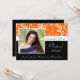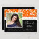 Invitaciones de graduación con foto y naranja de Classy, Diseño Blanco y Negro con flores y vides giratorias. Cuidada, moda, delicada y femenina para cualquier chica o graduada. Muestra tu estilo personal con esta hermosa invitación de foto grad. Excelente como invitación de graduación o invitación a fiesta de graduación.