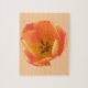 Este impresionante rompecabezas presenta una hermosa fotografía de un tulipán naranja en flor. La foto fue tomada con macrofotografía para mostrar realmente los sutiles matices de naranja de esta flor y el fino detalle de sus pétalos. La flor ha sido cortada de la foto y puesta en un fondo naranja pálido para realzar su belleza.