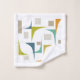 Añada un toque de color a su cuarto de baño con este tejido moderno de esquinas y rectángulos de mediados de siglo. Los colores son azul turquesa, naranja, verde aguacate, azul y tostado.