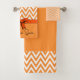 Patrón de chevron de especias de calabaza naranja y blanco en un juego de toallas de baño que puedes personalizar. Chevron es un patrón de V invertida, con cada lado reuniéndose en el punto sin interrupción. Los resultados son un patrón audaz, clásico y en zig-zag sin costuras. Similar pero ligeramente diferente al patrón tradicional de espiga de pescado. Toallas coloridas para personalizar para ti mismo, tu mamá, papá, tío, tía, hermano, hermana, vecino, abuelo, abuela, esposo, esposa, amigo o colega de trabajo.