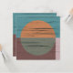 Diseño moderno en tonos naranja, verde, verde azulado, azul y marrón.
