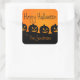 ¡Una manera fácil de hacer bolsas de comida es con bolsas de almuerzo normales, o sacos de sándwich y ponerles un Pegatina de Halloween! Este pegatina de Halloween presenta un sencillo gráfico de calabaza negra y naranja. Personalízalo para que sus trucos o tratantes sepan de quién son sus tratamientos. Genial para los fiestas también.