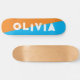 simple naranja y skateboard azul para él, para ella o para ellos es tu nombre personalizado con una atrevida y angustiada letra. Obtén el diseño abstracto perfecto para un cumpleaños adolescente o un regalo de Navidad. Simplemente escribe tu propio nombre para un patineta personalizado.