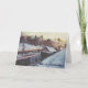 Hecho de una foto de la mañana de navidad temprana en el canal magnífico de la unión en Bulbourne con el sol naciente amarillo que brilla a través de las chimeneas del narrowboat que fuman, con Felices Navidad en las Navidad delanteras y felices del equipo dentro, en una tipografía del efecto de la nieve, que se puede cambiar a su propio saludo.