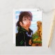Un niño norteamericano nativo. Una gran postal para el día de Acción de Gracias. Artista internacional Jo-Ann Hayden