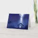 Frente: Natividad del navidad con el interior azul del fondo: Salvador de la parte inferior del mundo: Las Felices Navidad apoyan: Árboles de navidad con nieve