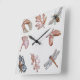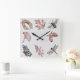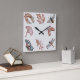Reloj de pared de guardería con huellas de la Naturaleza. Para guardería o sala de juegos. Reloj cuadrado de 10"x10" con Pinecone, Acorn, hoja de arce, hoja de roble, hoja de Ginkgo, abeja, libélula y mariposa.