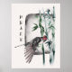 Este elegante poster japonés dice "Paz" en un diseño tipográfico de estilo asiático junto a un hermoso ilustracion natural de arte acuarela de un pájaro rojo y negro y bambú verde. Enmarcado, hará de usted un regalo atesorado o una adición elegante a su propia decoración. Uno de una serie de cuatro.