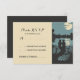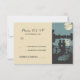 Bodas románticas tarjetas RSVP con novia y novio, árboles, bosque, lago, luna y luces de cuerdas.