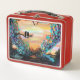 Pintura original de un paisaje atardecer, con un árbol en forma de corazón con dos pájaros.