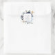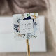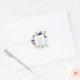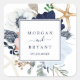 Estos modernos sellos para sobres acuáticos florales bodas son perfectos para un crucero o una boda en la playa. El diseño es llamativo, con flores de color rosa y azul marino con acentos dorados de estrella de mar, lo que le da un ambiente de playa. Personalice la etiqueta con los nombres de la novia y del novio.