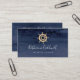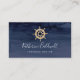 Esta moderna tarjeta de visita de barco náutico es perfecta para un pequeño empresario, un consultor, un estilista y mucho más. El diseño es sencillo, con una rueda de barco dorado sobre un fondo acuático azul marino.
