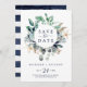 Este moderno entorno náutico permite guardar la tarjeta de fecha y es perfecto para un crucero o una boda en la playa. El diseño botánico presenta hermosas hojas verdes con flores de la marina y acentos de estrella de oro, lo que le da un ambiente de playa.