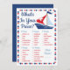 Un dulce rojo, blanco y azul navegando con temática náutica What's In Your Purse Baby ducha juego para los niños duchas de bebé. Con un lindo borde de puntos.