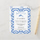 Celebra tu ducha de bebé con esta linda invitación a la ducha de bebé "Ahoy, es un niño". Presenta un elegante tema náutico azul y blanco con hermosos gráficos de animales del océano y barcos. El texto, con una letra elegante, está enmarcado por un elegante marco de olas. La palabra "Ahoy" se curva alrededor del delfín que salta. El reverso presenta el fondo de los animales marinos y el texto personalizado. Personalizar haciendo clic en el botón "Personalizado" y cambiando los detalles a los suyos.