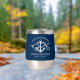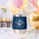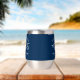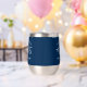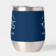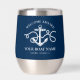 This classic navy blue and white nautical wine tumbler features a vintage style anchor entwined in a rope, and templates for the custom boat name and ship's registry.