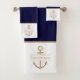 Diseño de toallas de baño de barro azul blanco y dorado de la Marina Monograma Náutico diseño de Sandy Closs