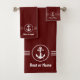 Su nombre con un elegante Ancla Náutica y una toalla de baño en rojo profundo.
