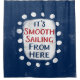 El texto en negrita que dice "Navegación suave desde aquí" se centra en un fondo azul marino. El texto rojo y azul se sienta en un rectángulo blanco con grandes puntos blancos texturados alrededor de él, lo que proporciona un contraste lúdico con el fondo de color sólido.