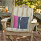 Añada un nuevo toque de vida a su jardín y mobiliario de patio con esta almohada exterior moderna de rayas rosas, navales y blancas a rayas en un moderno diseño de franjas verticales en bloques de color.