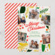 Comparte la alegría de la temporada con esta tarjeta de Navidad alegre y brillante, que presenta un diseño de corona botánica dibujada a mano colorida, rayas juguetonas y un collage de las fotos favoritas de tu familia. Personaliza con tus nombres y mensaje sincero para un saludo navideño verdaderamente único. Perfecto para enviar deseos navideños, capturar recuerdos familiares y agregar un toque de color a la temporada navideña.