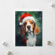 Diseño navideño colorido y alegre con un Beagle que lleva un sombrero de Santa.