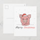 El cerdo en Navidad con un sombrero de Santa. Animales divertidos con regalos y nieve para las fiestas. Un dulce saludo de Navidad. Los cerdos son animales lindos y perfectos para la Navidad.