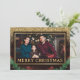 Diseño de Navidad con brillo dorado y follaje invernal sobre madera rústica para foto familiar
