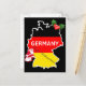El esquema del mapa de Alemania con la bandera nacional que cubre el interior. El nombre de país se sobrepone sobre el mapa. Dejan un Papá Noel rojo en la parte inferior junto con "Felices Navidad" en alemán "Frohe Weihnachten"