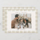 Capture un recuerdo querido con nuestra Tarjeta de Navidad con Gingham Beige Suave. Este diseño moderno te permite mostrar una foto favorita de la familia, sobre un encantador fondo de gingham beige suave con el título festivo "Navidad más Alegre". Personaliza la parte delantera con el nombre de tu familia y agrega un mensaje de Navidad emotivo en la parte trasera. Difunde alegría y calidez a tus seres queridos con esta tarjeta personalizada.