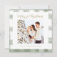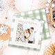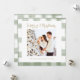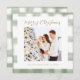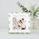 Tarjeta de Navidad cuadrada con foto de cuadros gingham verdes - Diseño de ilustración con textura de acuarela elegante y personalizable con la foto de tu familia, nombre y año.