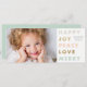 Una tarjeta de Navidad con foto y tipografía moderna que presenta tipos de letra atrevidos y brillantes en una variedad de colores alternos y foil dorado. Orientación de foto horizontal.