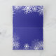Elegante tarjeta de Navidad y de invitación a la fiesta azul marino y blanco helado. Puede personalizar fácilmente esta hermosa tarjeta de Navidad de copo de nieve azul para su evento agregando sus datos en la parte frontal y en el interior con el estilo de letra y redacción que elija.