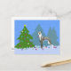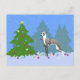 Galgo italiano o Whippet que adorna un árbol de navidad en el bosque Nevado