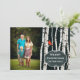 La tarjeta de felicitación plana elegante del navidad del estilo, con una fotografía de encargo, en el lado izquierdo, y los gráficos del blanco rasparon árboles de abedul, a la izquierda. Las solas percas cardinales rojas en una de las ramas de árbol y de un vintage que miran la placa oval del estilo de la pizarra, abajo, tienen texto de encargo blanco listo para personalizar. Añada su propia imagen y texto a este saludo precioso del día de fiesta. Productos a juego disponibles.