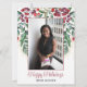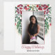 Celebre la temporada con una tarjeta de felicitación brillante y festiva enmarcada por bayas de acuarela, ramitas de siempre verde y delicados acentos dorados. Un clásico saludo de “Felices Fiestas” en escritura fluida se encuentra debajo de su imagen, con espacio para un nombre o mensaje corto debajo. Reemplace la foto de muestra en minutos para crear un saludo de fiestas cálido y personalizado perfecto para amigos, familiares o colegas.