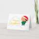 ¡Little Boy que lleva los saludos del día de fiesta de la escritura del gorra de un Santa en la nieve! ¡Cuando no es bastante para decirla, rocíela!