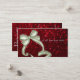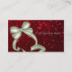 Una tarjeta de visita que ofrece una cupón o un regalo para un salón con un fondo brillante, purpurinoso, rojo, y un arco grande, de plata que parece una actual caja. ¡Perfeccione para los estilistas, los hairstylists, los cosmetologists, la cosmetología, los salones y más!