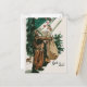 Papá Noel del vintage del traje inusual del marrón otro que coge los juguetes y presenta caer del cielo. Dios julio significa Felices Navidad en sueco, danés y noruego. La imagen del vintage es de una postal europea antigua CA 1910. También note el conejo de conejito el tomar de él todo adentro en la noche encendida luna nevosa de Navidad.