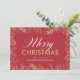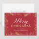 Esta tarjeta de Navidad corporativa es la forma perfecta para que cualquier empresa exprese gratitud a sus clientes. La parte frontal muestra vegetación navideña dorada sobre un fondo rojo intenso, con texto elegante que dice "Feliz Navidad". Puedes personalizar la parte trasera con tu propio mensaje o elegir el simple mensaje de agradecimiento proporcionado.