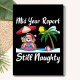 Tarjeta divertida de Navidad en julio con el informe de mitad de año de Santa de "sigue siendo travieso"