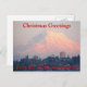 Tarjeta postal de Navidad que presenta una imagen fotográfica de un resplandor alpino rosa brillante en el Monte Rainier mientras mira hacia abajo a la ciudad del Pacífico Noroeste de Tacoma, Washington. ¡Perfecto para aquellos que viven en el Pacífico Noroeste! Puede personalizar su tarjeta postal para agregar texto al dorso de la tarjeta, como el nombre de la empresa u otro texto según sea necesario. Seleccione entre estilo mate o brillante.