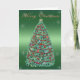 Envíe sus deseos de vacaciones en este árbol de Navidad elocuentemente diseñado contra una tarjeta de bienvenida de fondo de gradiente verde. Personalizar fácilmente tu mensaje eliminando la imagen interior o agregando tu propio texto.