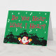 Tarjeta de Navidad de motocicleta divertida con Santa cantando "¿Oyes lo que oigo?" con un grupo de siluetas de motocicletas en el fondo. El mensaje interno Feliz Navidad se puede editar o agregar.