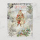 Collage estacional festivo de la colorida efímera vintage con el viejo mundo Padre Navidad con túnicas rojas y regalos con niñita, borde hueco grabado y texto de Joyeux Noel, campana de bronce y mistletoe, paisaje de pino e invierno con copos de nieve y fondo angustiado.
