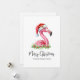 Adéntrate en el espíritu navideño con esta tarjeta de Navidad linda y caprichosa que presenta un flamenco de acuarela rosa que lleva un sombrero de Santa. Un pequeño ramo de acebo se sienta en la parte superior del diseño, mientras que más hojas de acebo y bayas se dispersan a lo largo de la parte inferior para un toque festivo. La disposición juguetona y elegante hace que esta tarjeta sea una opción encantadora para cualquiera que ame un giro divertido en los temas clásicos de las fiestas.