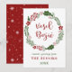 Corona de Navidad verde y roja, tarjeta de Navidad, con las palabras Feliz Navidad en esloveno: Vesel Božič.